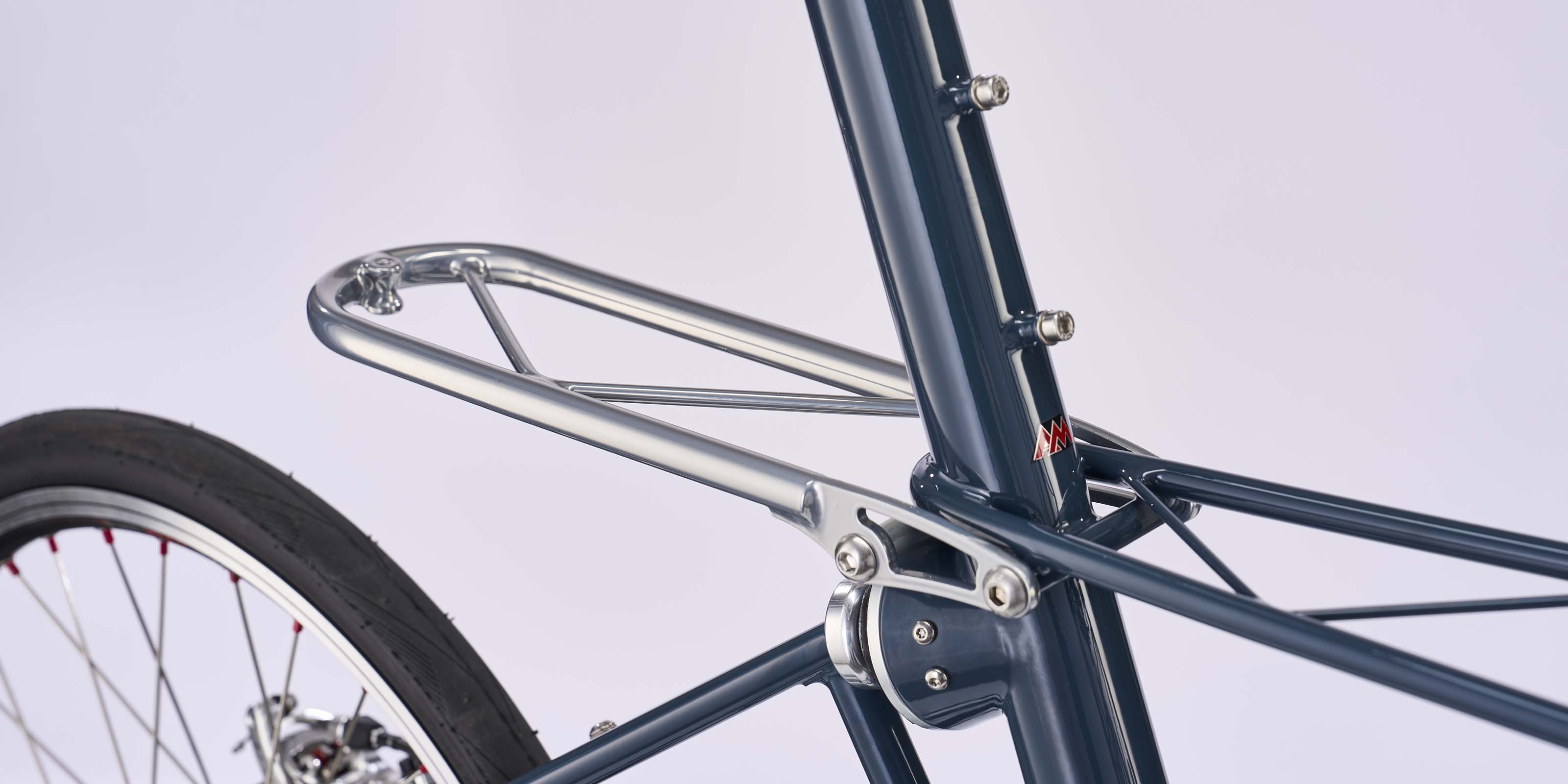 The integrated rear lamp mounting plate supports safe all-season commuting, while the platform is perfectly sized for the Moulton Day Bag or similar compact loads. Its restrained profile keeps weight low and handling sharp.