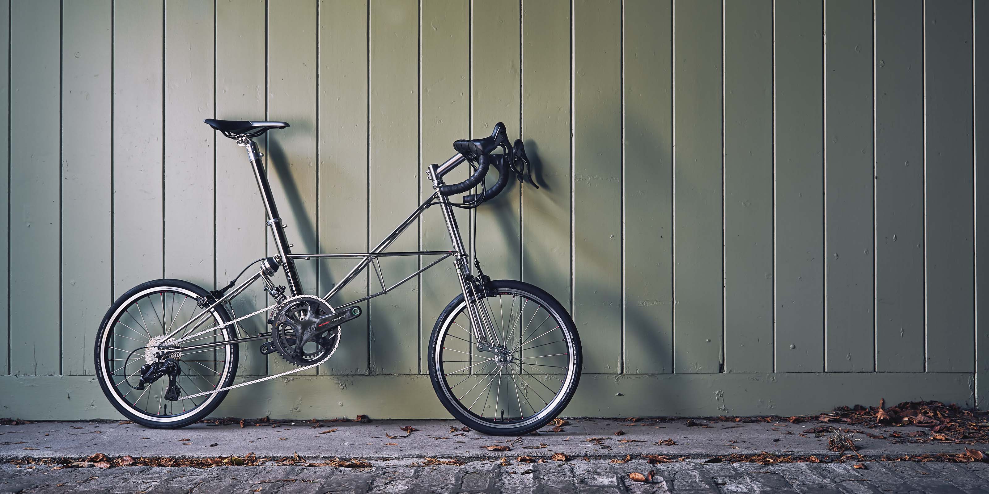 The Moulton SPEED is the lightest and most road-focused model - a fixed-frame, all-stainless spaceframe built without compromise. Using labour-intensive construction in Columbus XCr and aerospace stainless steels, silver-brazed and hand polished to a mirror finish, it is engineered for outright speed and precision. Short-stroke front suspension and Hydrolastic® rear suspension deliver control without softness. Designed as a true speed and race Moulton, the SPEED is a distilled expression of efficiency, stiffness and mechanical clarity.